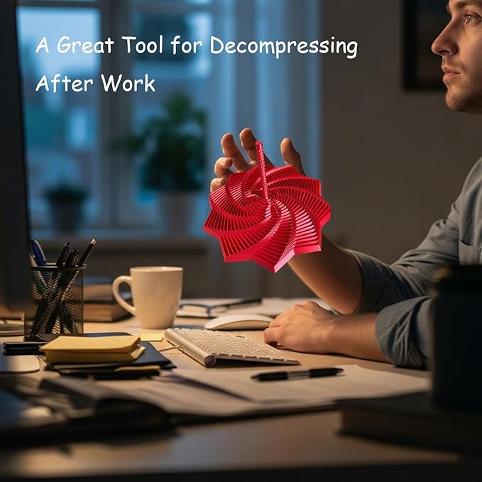 Integrated handles and a mesmerizing whirling spiral mechanism enable smooth, satisfying manipulation. Expanded star geometry offers rich visual and tactile feedback, reducing anxiety, improving focus, and promoting mindfulness.